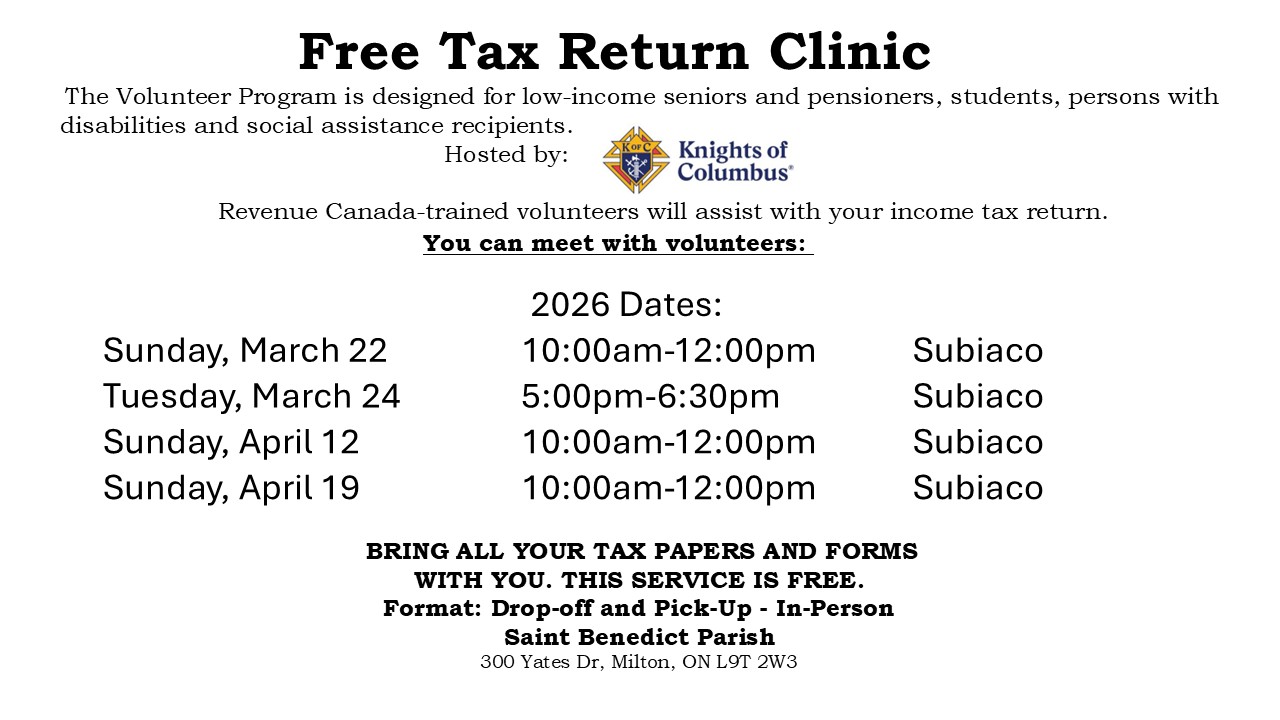 We sincerely thank all parishioners for their continued support. Tax receipts for 2025 donations will be available for pickup beginning the weekend of February 7/8. Receipts are organized alphabetically for your convenience.